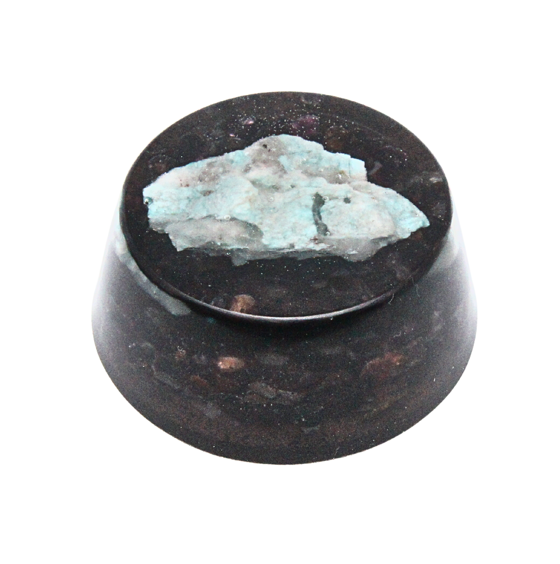 The Rondo Specials feature a prominent raw crystal at the top, supported by layers of carefully selected stones, Clear Quartz, Selenite and a copper–Shungite base.