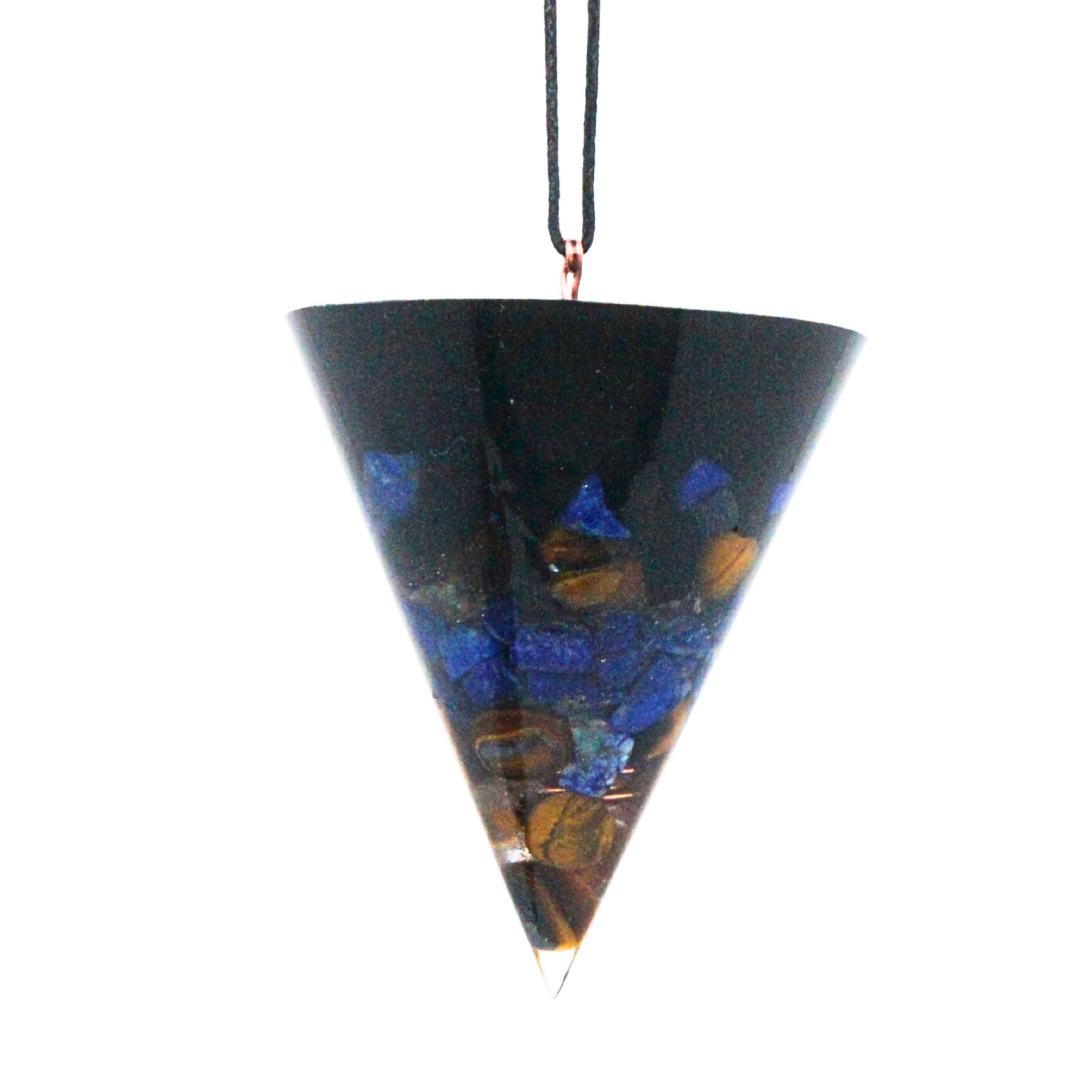 Eye, Lapis Lazuli, Black Tourmaline, Clear Quartz, Selenite, copper spiral and